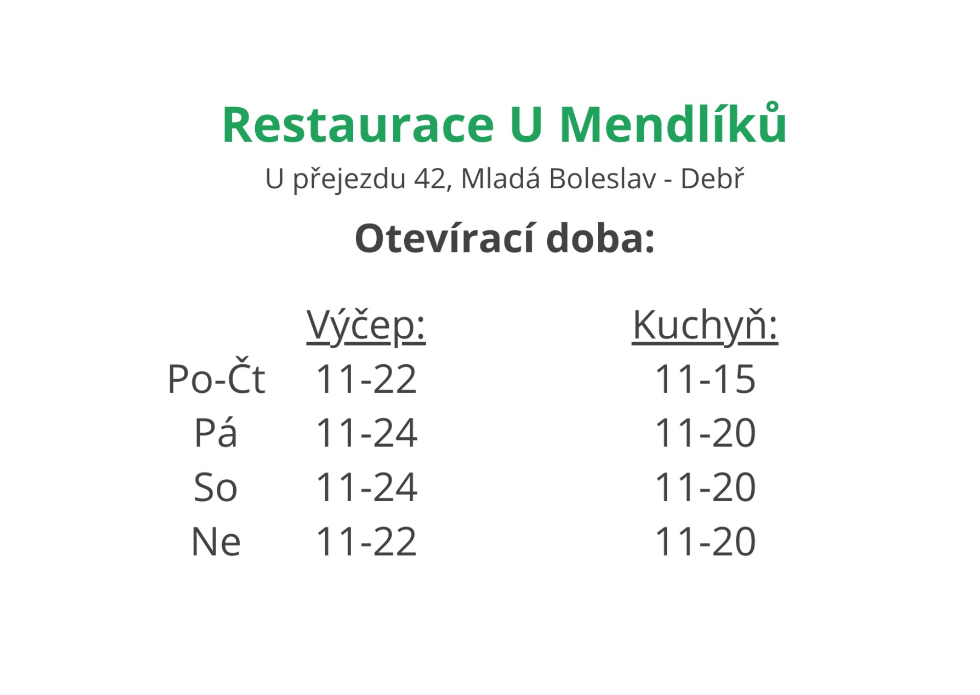 V případě nahlášené akce, bude kuchyň otevřena do 20 hod.